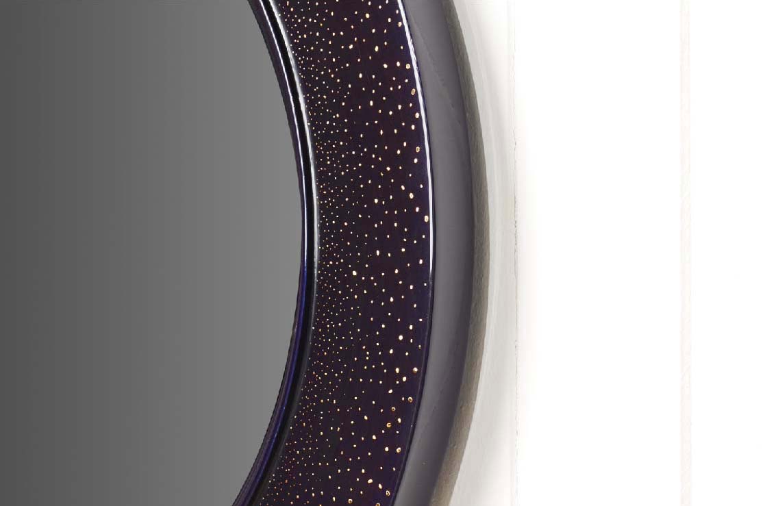 Materials | Cherry Wood. Lacquer. Historical pigments and 24 carat, Japanese junkin-hiramefun gold dots, Grey mirror plate. |
