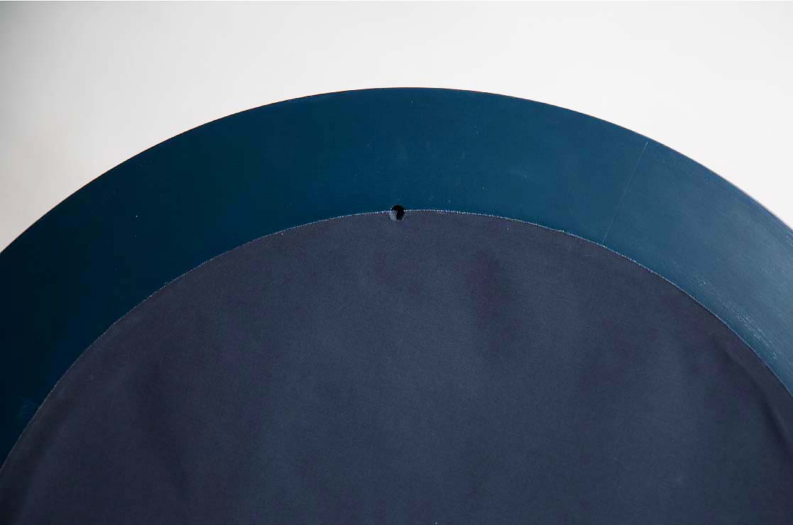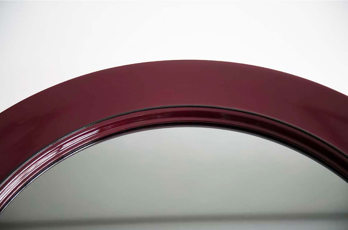 Turned wood. Building several layers of coloured lacquer. 24ct gold leaf used to create the straight lines, all together creating the illusion of a round line in the inner circle. |