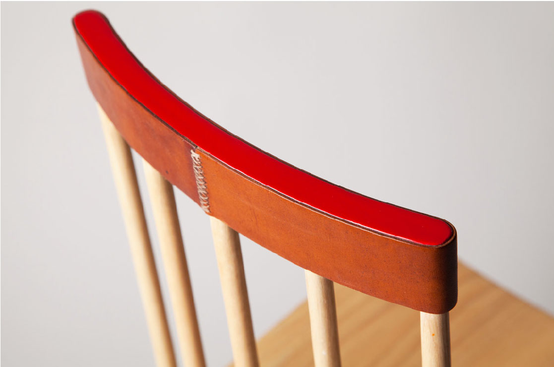 Japanese red lacquer. Oiled and waxed. Vegetable tanned leather.