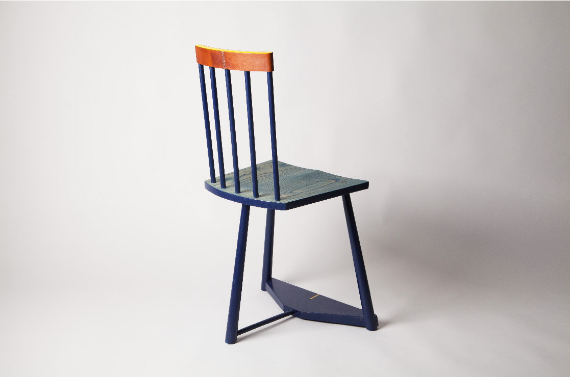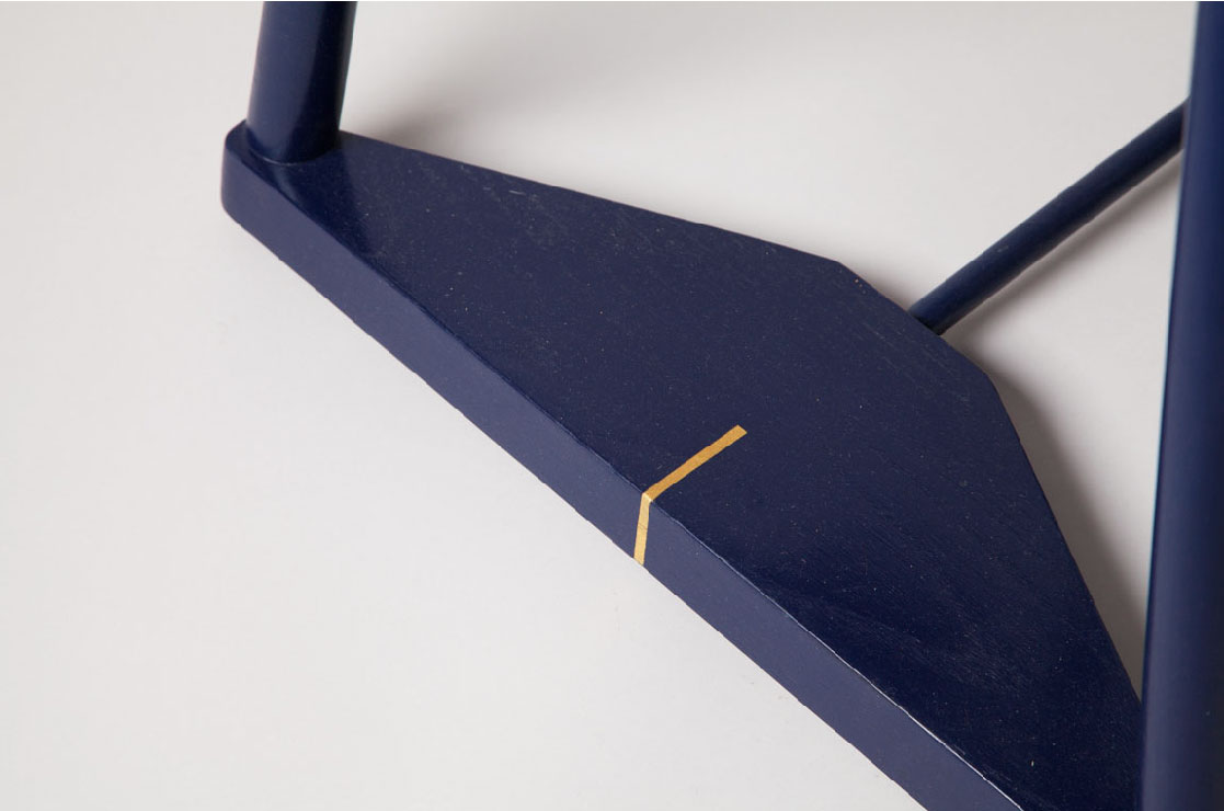 Painted and stained, gilding on footrest. Vegetable tanned leather.